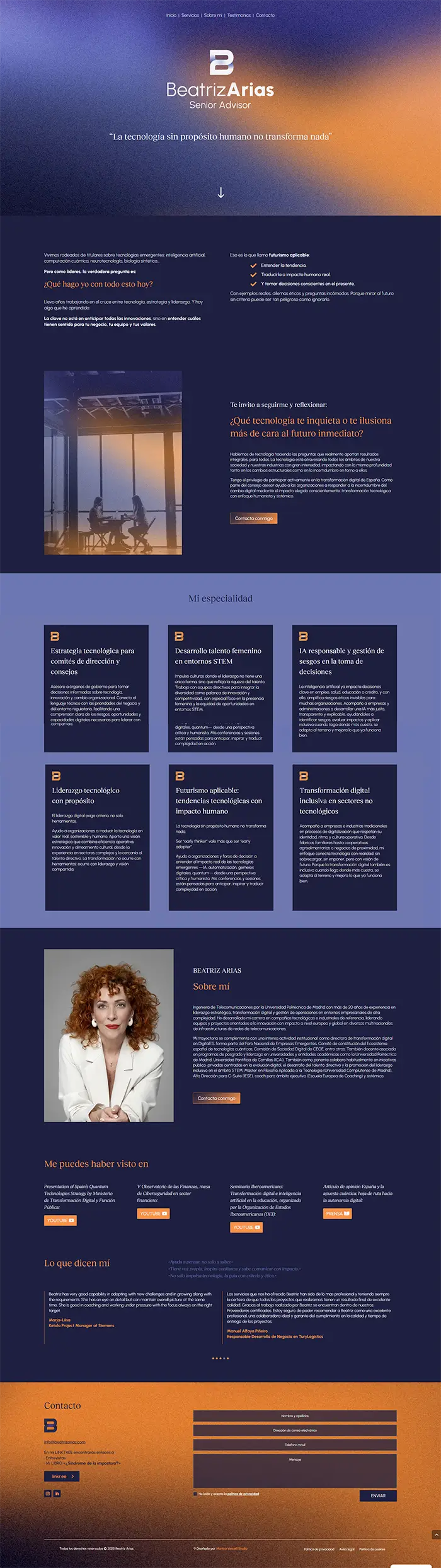 El resultado es un espacio digital sólido, profesional y auténtico que transmite con claridad su mensaje: la tecnología sin propósito humano no transforma nada.