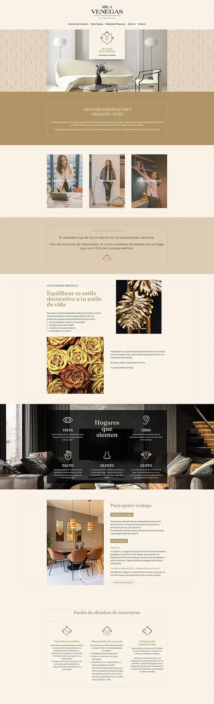 Desde AnadaStore desarrollamos una web cálida y sofisticada, con un diseño estructurado y lleno de matices que realza la elegancia de su marca personal.